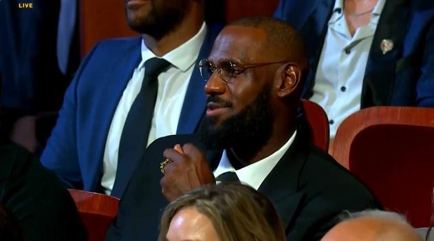 霍华德在台上演讲期间,导播切出詹姆斯的特写,全场球迷欢呼,霍华德表示:“哦哦,我是叫醒了一头怪兽吗?有湖人球迷在这里,OK,我向巴斯家族以及兰比斯家族致敬,你们总是支持我,ok,哦!勒布朗在这里啊,哦!勒布朗-詹姆斯来到了现场,感谢你的到来!”